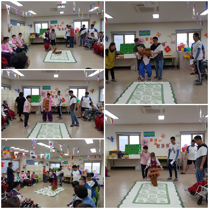 개인적으로 줄다리기 놀이가 재미있었는데, 입주자와 함께 줄을 당겨보는 것도 즐거웠고 선생님들간의 치열한(?) 힘의 대결 또한 모두에게 즐거운 자리였습니다. 내년에도 줄다리기는 다시 해보고 싶다는 생각이 드네요 ^^