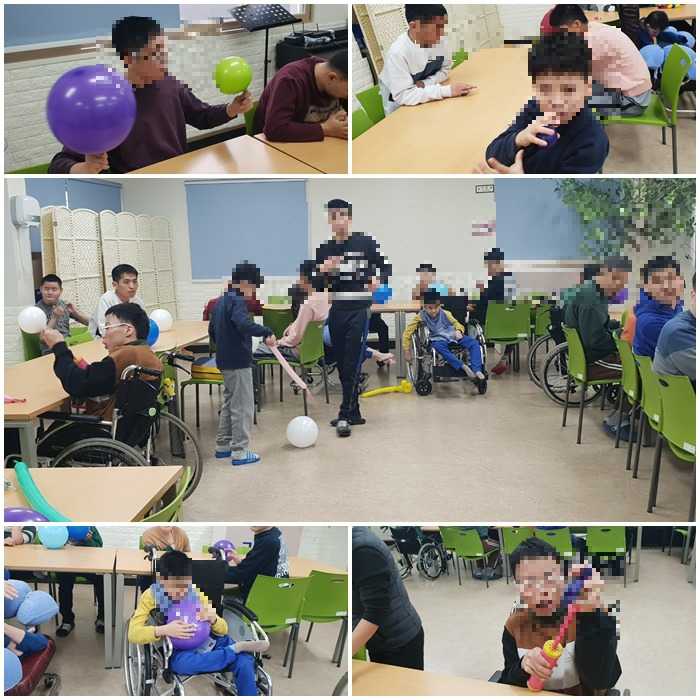 안녕하세요. 인혜원입니다. 앞으로 몇주에 걸쳐서 2019년도에 인혜원에서 진행되어지고 있는 프로그램을 소개해드리는 시간을 가지고자 하는데 주간에 실시되는 프로그램은 크게 7가지로 나뉘어집니다. 그중 하나인 미술활동("힘차게 풍선을 불어보자") 라는 프로그램을 소개해드립니다.
