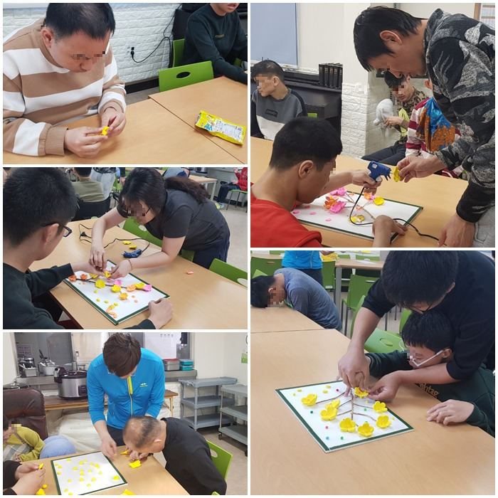안녕하세요. 일전에 소개해드린 미술활동 프로그램을 기억하시나요? 매주 1회 다양한 형태의 미술 작품을 만들어 보기로 하였는데, 봄을 맞아 벚꽃 액자를 만들어 보았습니다 ^^ 입주자들의 참여도도 좋았고 작품 또한 멋지게 나와서 뿌듯한 마음에 소개해드리고자 합니다 ^^