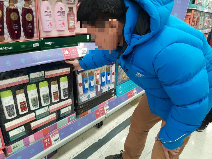 이제 마트에 가서 직접 선물을 구입하는 모습을 볼 수 있습니다. 눈빛을 보니 신중하네요 ~