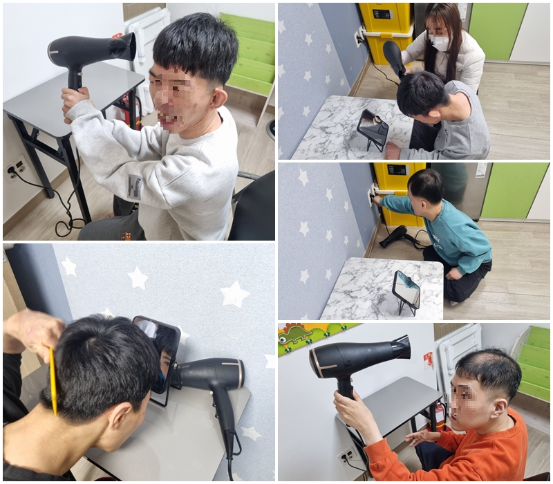 입주자분들의 일상생활지원의 일환으로 평소 가전제품 사용방법을 익히는 훈련을 실시하고 있습니다. 대부분의 경우 종사자의 도움을 받아야 하지만 향후에는 반복된 훈련을 통해 입주자분이 스스로 하실 수 있도록 하는게 지원 목표입니다.