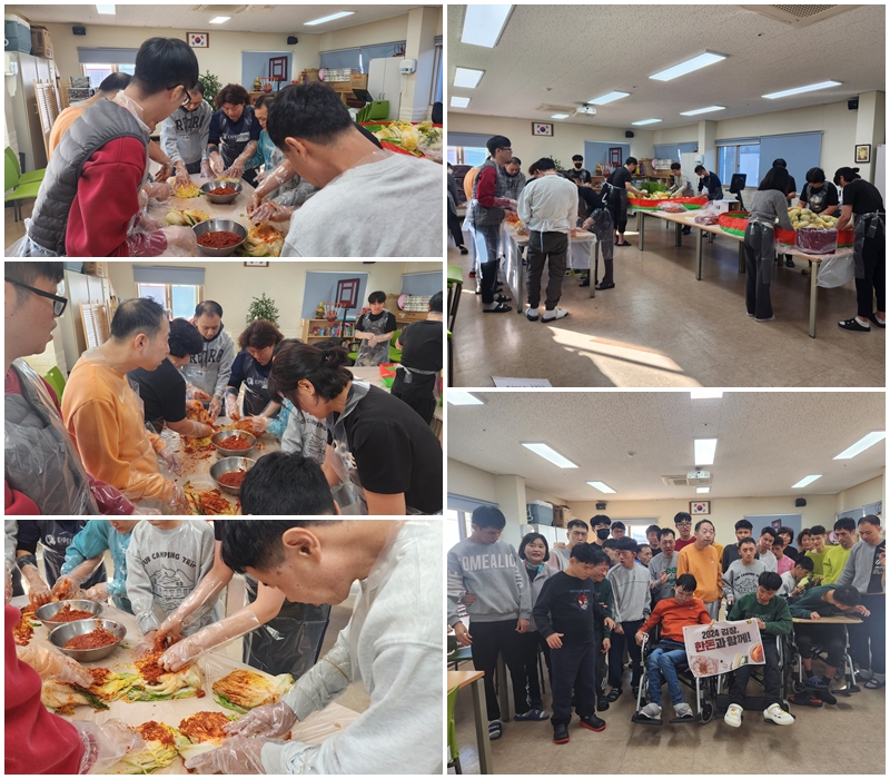 시설 입주자 김*문씨는 김장을 하면서 배추에 양념을 치될때 열심히 집중을 하는 모습을 보여주었는데 의사소통이 되지 않지만 김*문씨의 얼굴에 미소가 띈 모습을 볼 수가 있어서 기분이 좋았습니다.