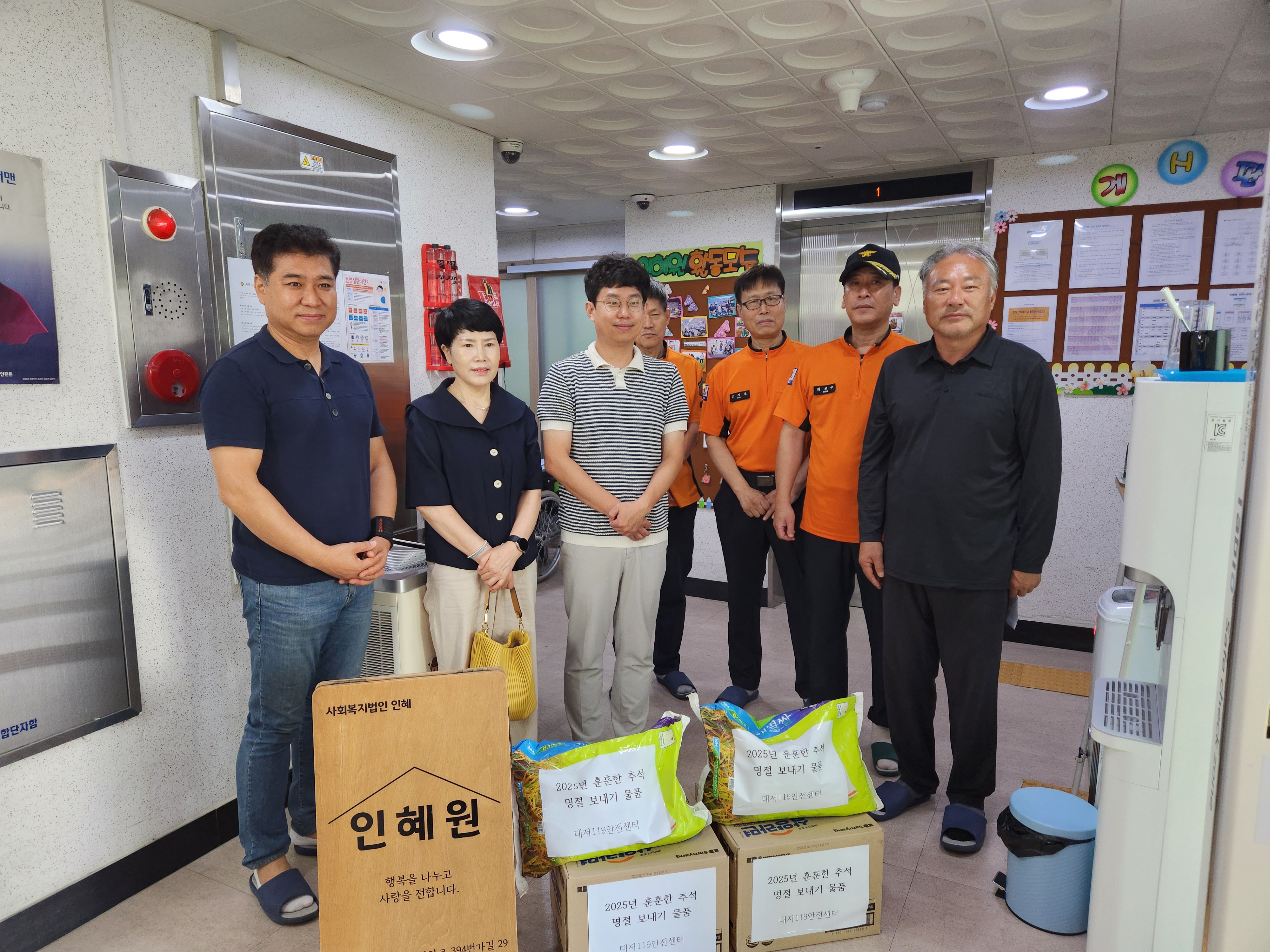 2025년 9월 29일, 추석 명절을 맞아 대저119안전센터와 의용소방대 관계자분들께서 저희 기관을 방문해 주셨습니다. 바쁘신 일정에도 불구하고 쌀을 비롯한 생필품과 후원금을 전달해 주셨습니다.