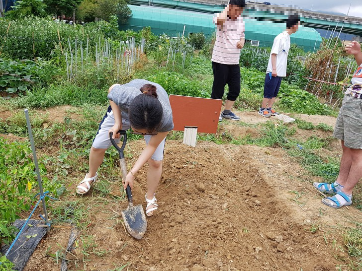주말농장 첫째날은 밭을 고르는 작업을 했는데, 다행히 구름이 조금 있어서 더위를 조금 피할 수 있었습니다.